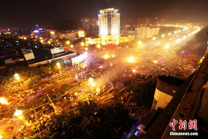 Das Fackelfest der Yi aus der Vogelperspektive |