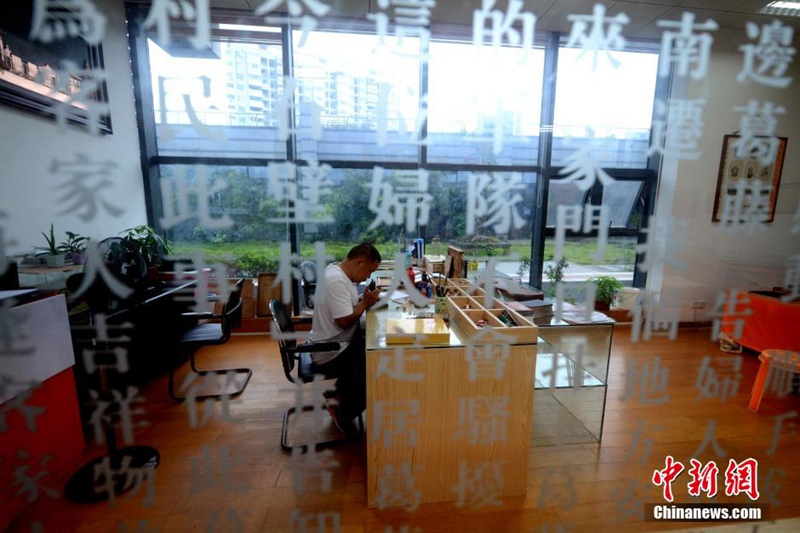 Volkskünstler Qiu Zhiqiang schnitzt Schriftzeichen. |