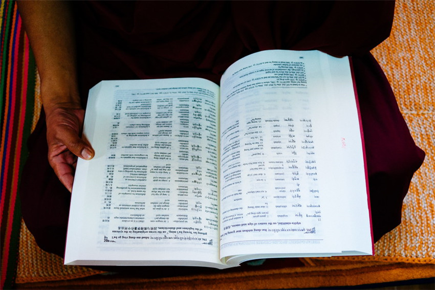 Auch ein dreisprachiges W?rterbuch über den tibetischen Buddhismus geh?rt zur Privatbibliothek des M?nchs. |