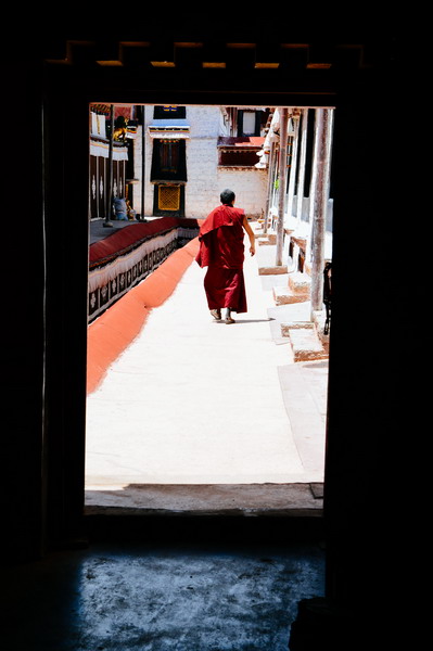 Nyima Tsering auf dem Weg in sein Büro im Jokhang-Tempel. |