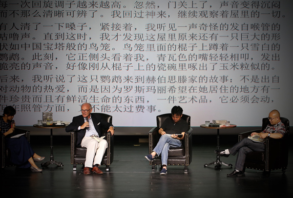 Unter Leitung des Moderators, Huang Liaoyu, Leiter des Fachbereiches Germanistik an der Peking-Universit?t und übersetzer der Werke Martin Walsers, entspann sich auf der Lesebühne zun?chst ein etwas einseitiger Dialog, den Mosebach mit dem Vergleich kommentierte, sich zu fühlen wie ein Patient, an dessen Krankenbett sich zwei ausgezeichnete ?rzte darüber unterhalten, um was für einen Fall es sich hier denn handele.