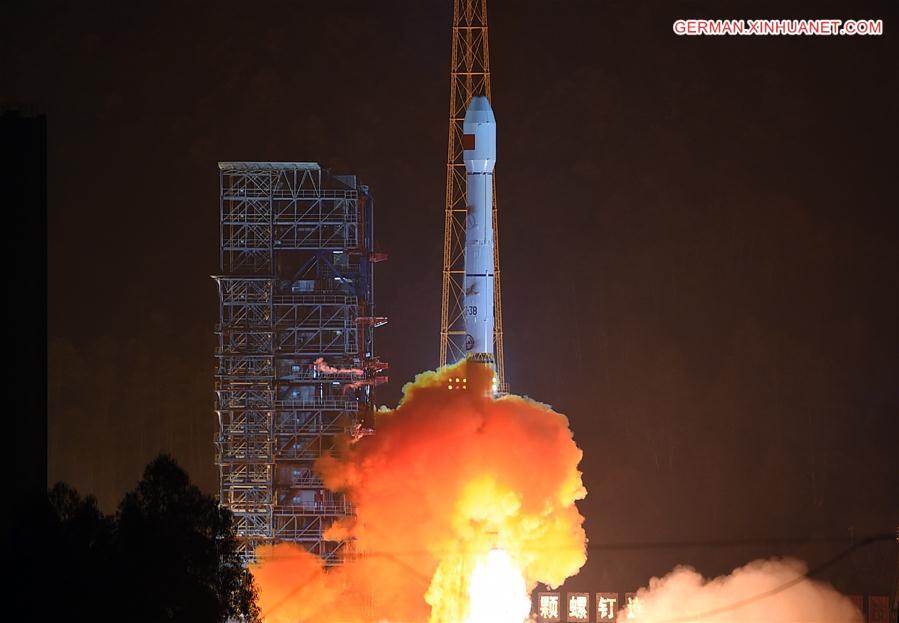 Die ?Langer Marsch 3-B" Rakete mit dem Satelliten Gaofen-4 wird in Xichang in der südwestchinesischen Provinz Sichuan gestartet, 29. Dezember 2015. China startete am Dienstag seinen anspruchsvollsten Beobachtungssatelliten Gaofen-4, der als Teil des hochaufl?senden Erdbeobachtungsprojektes angesehen wird.