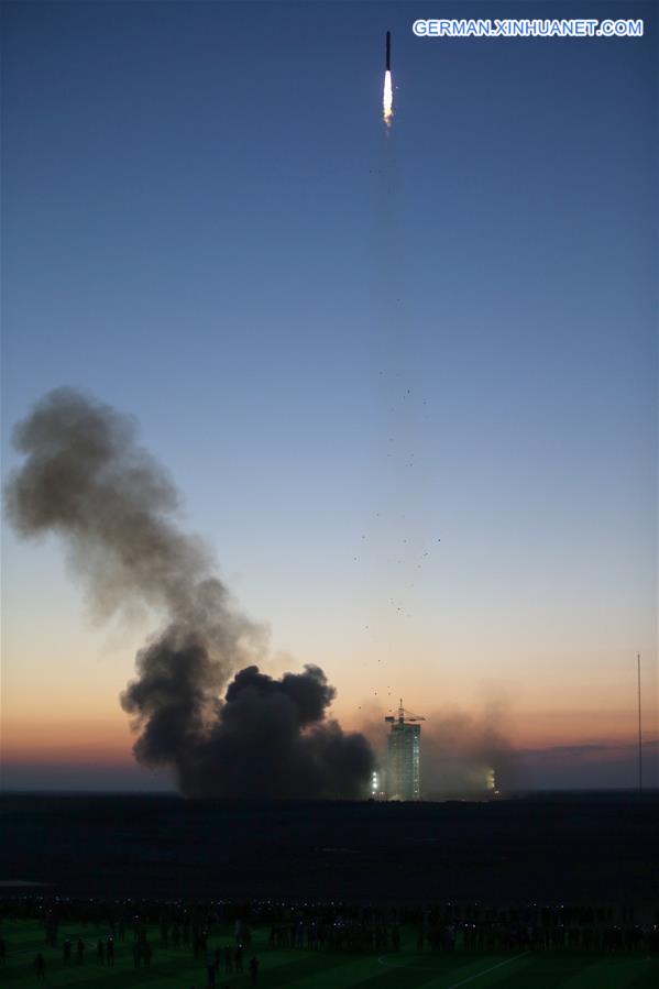 Eine ?Langer Marsch 2-D" Rakete mit einem Satelliten zur Erforschung der dunklen Materie an Bord, hebt vom Startzentrum Jiuquan in der nordwestchinesischen Provinz Gansu ab, 17. Dezember 2015. Der Satellite, der nach dem legend?ren Affenk?nig ?Wukong" aus dem Roman ?Reise in den Westen" benannt wurde, stellt das erste chinesische Luftraumteleskop in einer aktuellen Forschung über dunkle Materie dar.