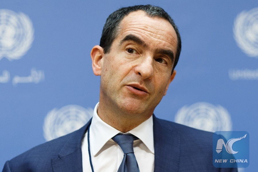Michael Liebreich, Gründer und Vorsitzender des Beirats von Bloomberg New Energy Finance, nahm am 27. Januar 2016 im Hauptquartier der Vereinten Nationen in New York an einer Pressekonferenz im Zuge des 2016 Investor Summit on Climate Risk teil. Das 2016 Investor Summit on Climate Risk wurde am Mittwoch im Hauptsitz der Vereinten Nationen abgehalten und rief Investoren dazu auf, auf dem starken Schwung des jüngsten Klimaabkommens von Paris zu bauen.