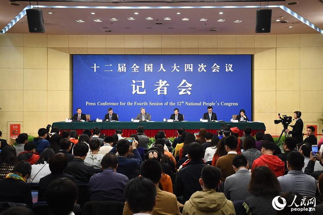 Pressekonferenz über finanzielle Reformen und Entwicklungen auf der vierten Tagung des 12. Nationalen Volkskongresses. (Foto von Yu Kai/ Prople’s Daily Online)