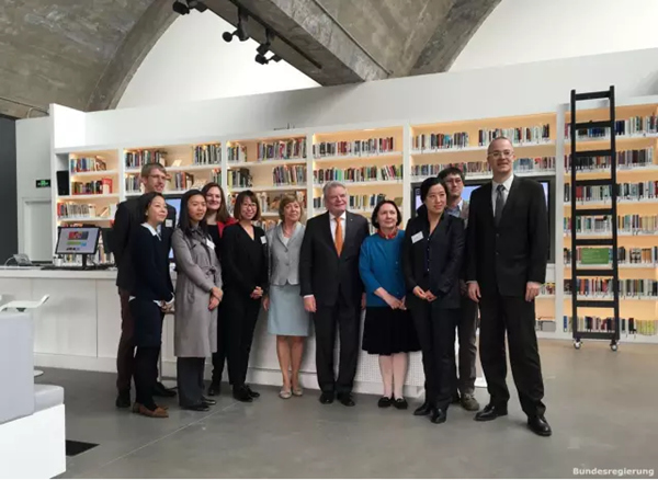 Peking, 22. M?rz 2016. Der Pr?sident der Bundesrepublik Deutschland Joachim Gauck hat bei seinem ersten Staatsbesuch in China den im vergangenen Oktober er?ffneten Standort des Goethe-Instituts im Kunstviertel ?798“ besucht. Gemeinsam mit dem Leiter des Goethe-Instituts, Dr. Clemens Treter, besichtigte er die ?Wissensbar“, den ?Grey Cube“ und die ?Agora“, wo er sich anschlie?end mit den Schriftstellern Liu Zhenyun, Li Er, Xu Zechen, Feng Tang und Liang Hong über eine Stunde lang intensiv austauschte. W?hrend des Gespr?chs ging es um die literarischen Themen der Autoren, die chinesische Leserschaft, und um die Entwicklung und den Status Quo der chinesischen Kulturwelt.