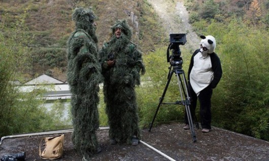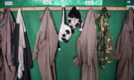 Pandakostüme der Mitarbeiter, welche Ami Vitale zufolge die schwierige Arbeit unheimlich erleichtern.