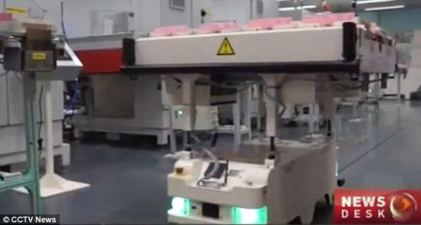 Aufnahmen von CCTV zeigen, wie zwei chinesische Fabriken menschliches Personal durch Roboter ersetzt haben.