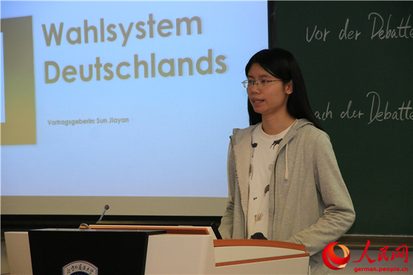 Sun Jiayan bei der Erkl?rung des Wahlsystems der Bundesrepublik Deutschland.