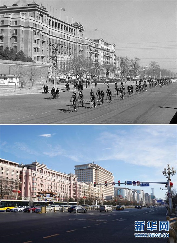 Unten: Die heutige Chang′an- Avenue (Foto vom 28. Januar 2019)