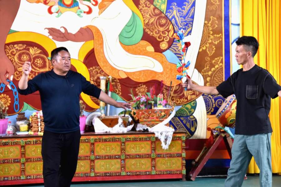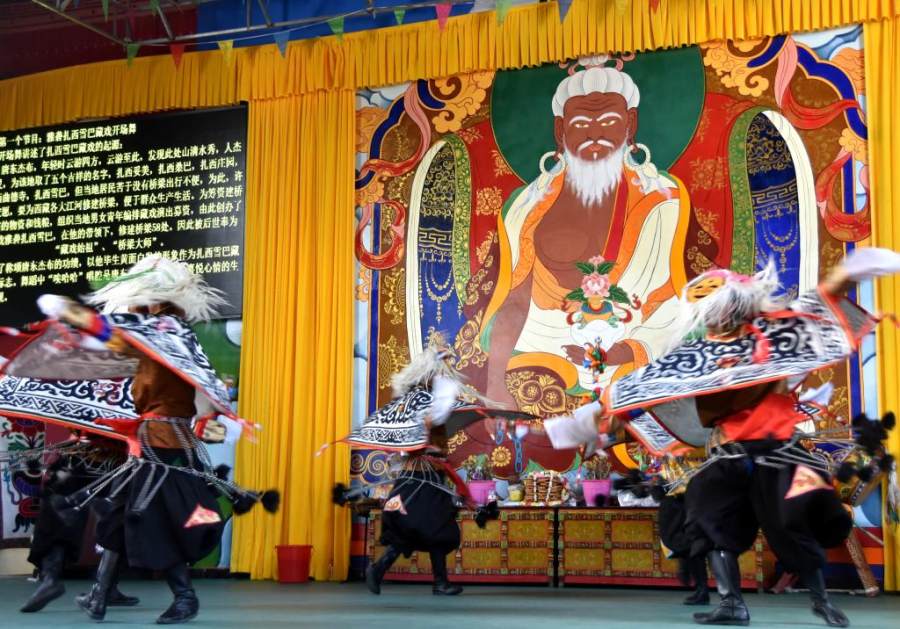 Die tibetische Oper hat nicht nur eine lange Geschichte, sondern es ist auch eine umfassende Kunst von Gesang und Tanz, Darbietung sowie Literatur. 2006 wurde sie in den Katalog des staatlichen immateriellen Kulturerbes aufgenommen. ?Hier bei uns k?nnen alle Leute die tibetische Oper spielen und alle m?gen sie sehr gern.“ Der 49-j?hrige Nyima Tsering begann, als er 16 Jahre alt war, von seinem Meister Padma Dondrup die Aufführung der tibetischen Oper zu lernen. Als überlieferer dieses immateriellen Kulturerbes leitet er t?glich die Oper-Proben der jungen Leute an.