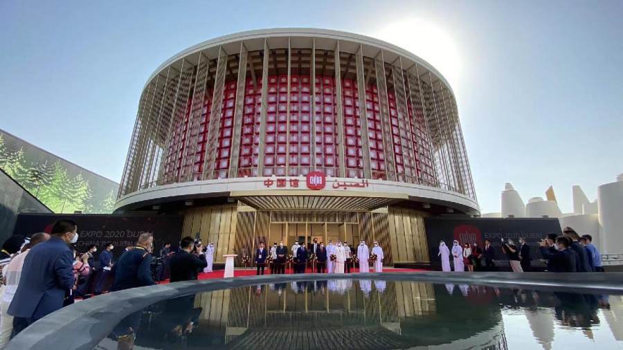 Mit einer Fl?che von 4.636 Quadratmetern ist der ?Light of China“-Pavillon, der die Form einer traditionellen chinesischen Laterne hat, einer der gr??ten auf der Expo 2020 Dubai.