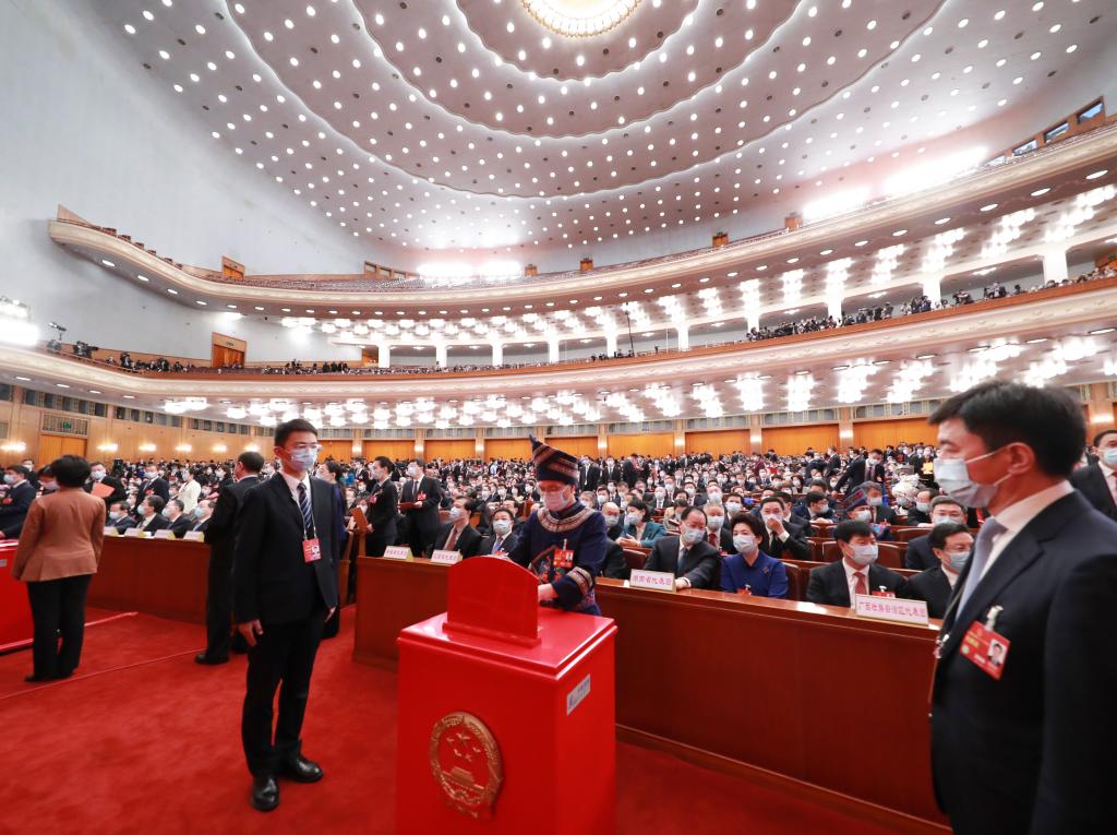 Der chinesische Staatspr?sident Xi Jinping hat am Samstagvormittag an der vierten Plenarsitzung der ersten Tagung des 14. chinesischen Nationalen Volkskongresses (NVK) in der Gro?en Halle des Volkes in Beijing teilgenommen.