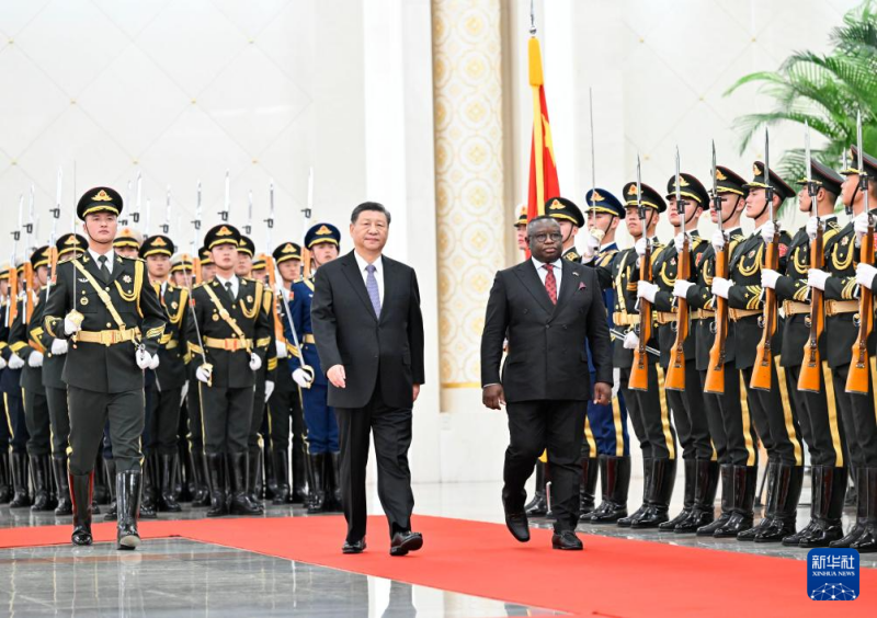 Am Mittwoch hat Chinas Staatspr?sident Xi Jinping in der Gro?en Halle des Volkes in Beijing seinen Amtskollegen von Sierra Leone, Julius Maada Bio, zu einem Gespr?ch empfangen, der China einen Staatsbesuch abstattet.