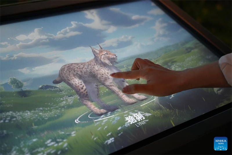 Ein Besucher informiert sich an einem digitalen Ger?t im Daqing-Museum in der Stadt Daqing in der nordostchinesischen Provinz Heilongjiang am 5. Juni 2024 über Luchse. (Xinhua/Chen Zhihao)