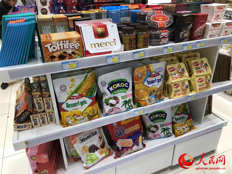 Waren in einem Duty-Free-Gesch?ft auf der kasachischen Seite. (Foto: People’s Daily Online/Oliver Fritzsch)