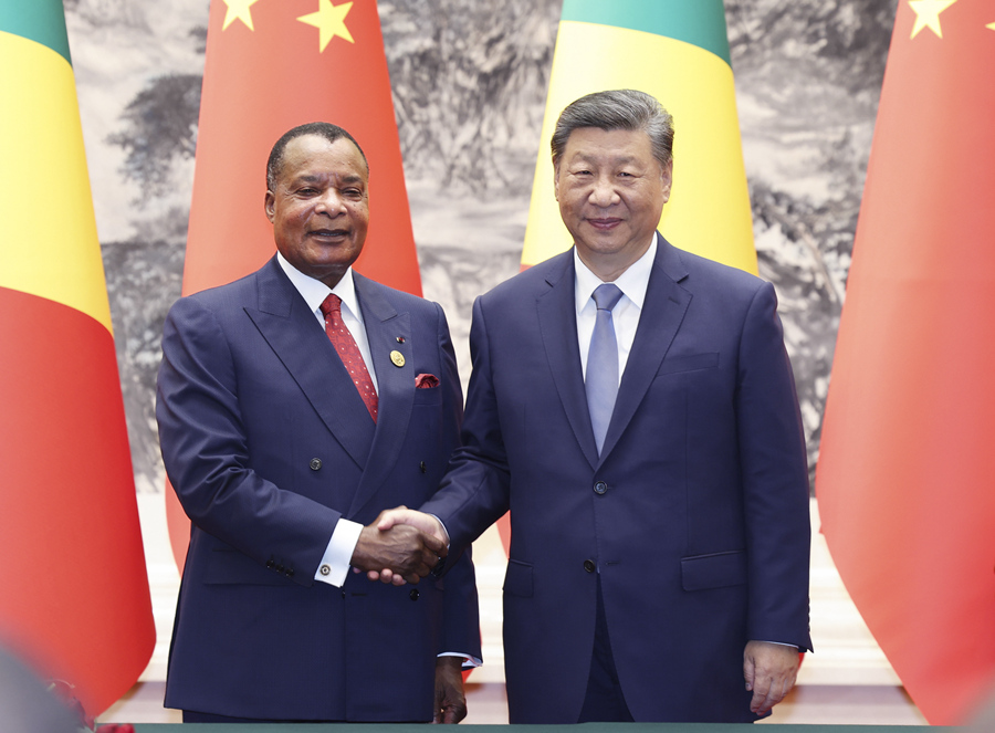 Bei dem Treffen mit dem Pr?sidenten der Republik Kongo, Denis Sassou Nguesso, bekr?ftigte der chinesische Staatspr?sident erneut, China würdige die feste und klare Unterstützung der Republik Kongo in allen Fragen hinsichtlich der Kerninteressen und wichtigen Anliegen Chinas. China wolle den Erfahrungsaustausch bei der Staatsverwaltung mit der Republik Kongo vertiefen, Kontakte in allen Aspekten und auf allen Ebenen intensivieren sowie gemeinsam Entwicklungswege zur Modernisierung finden.