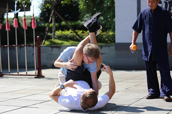 Mitglieder des Medienkooperationsforums der ?Belt and Road“-Initiative 2024 führen die Emei-Kampfkunst vor. (Foto: Liu Xiaoli/People’s Daily)