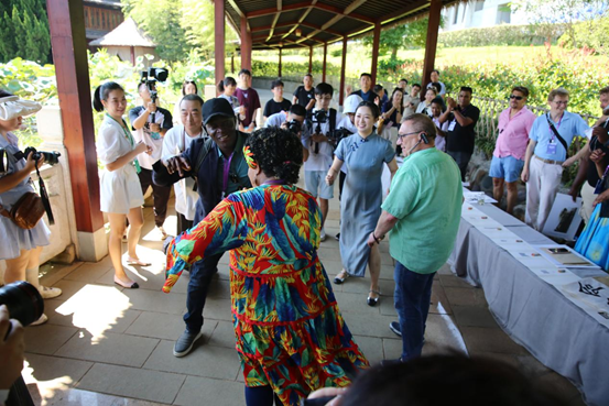 Ein Mitglied des Medienkooperationsforums der ?Belt and Road“-Initiative 2024 tanzt einen traditionellen Tanz aus Vanuatu. (Foto: Liu Xiaoli/People’s Daily)