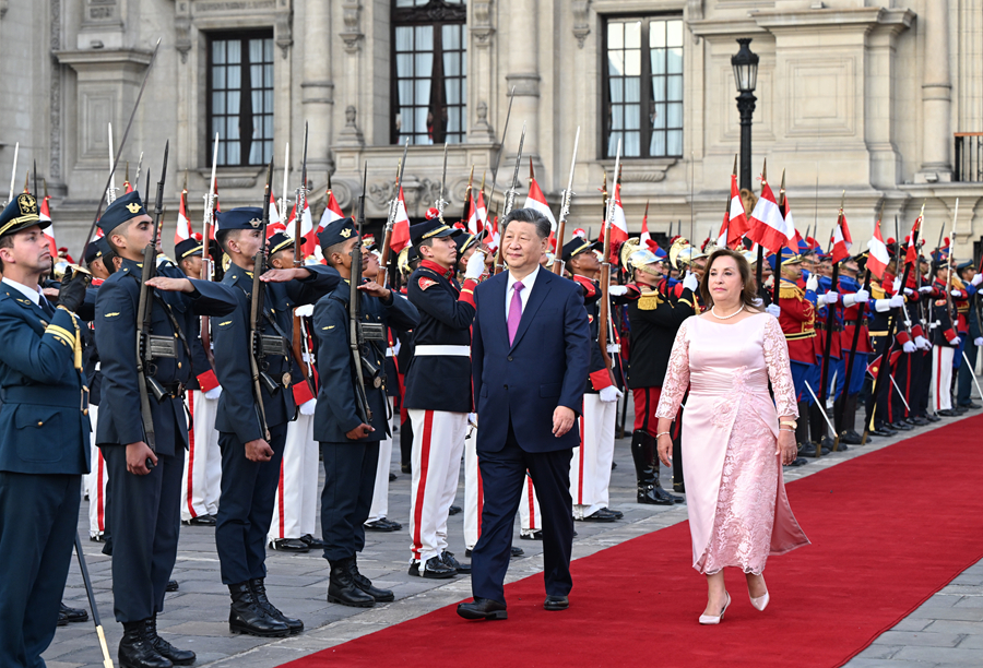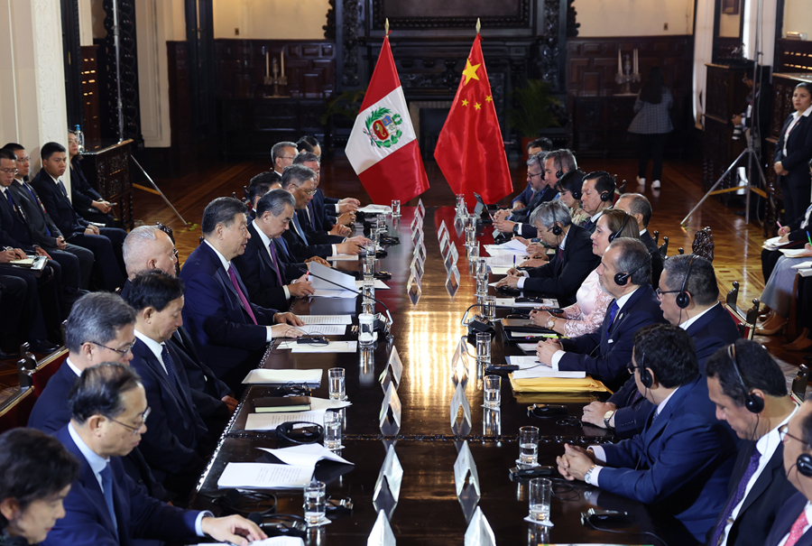 Xi erkl?rte, dies sei sein dritter Besuch in Peru und sein drittes Treffen mit Pr?sidentin Boluarte innerhalb eines Jahres. Seit der Aufnahme diplomatischer Beziehungen zwischen beiden L?ndern vor 53 Jahren h?tten sich die bilateralen Beziehungen gut entwickelt. Insbesondere seit seinem ersten Staatsbesuch in Peru im Jahr 2016 habe sich das bilaterale Handelsvolumen dank gemeinsamer Anstrengungen beider Seiten rasanter entwickelt. All dies habe beiden V?lkern konkrete Vorteile gebracht.