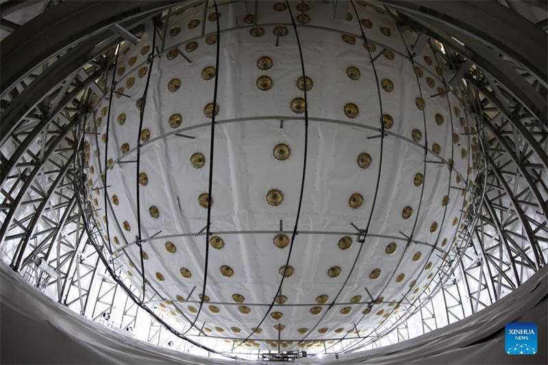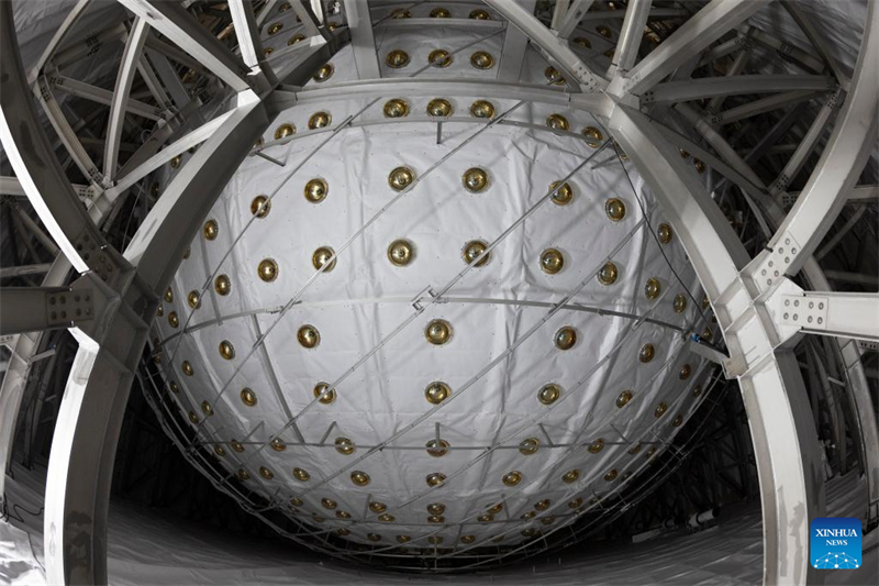 Dieses Foto vom 17. Dezember 2024 zeigt Photomultiplier-R?hren von der Spitze der Acrylkugel des Jiangmen Underground Neutrino Observatory (JUNO) in Jiangmen in der südchinesischen Provinz Guangdong. (Xinhua/Jin Liwang)