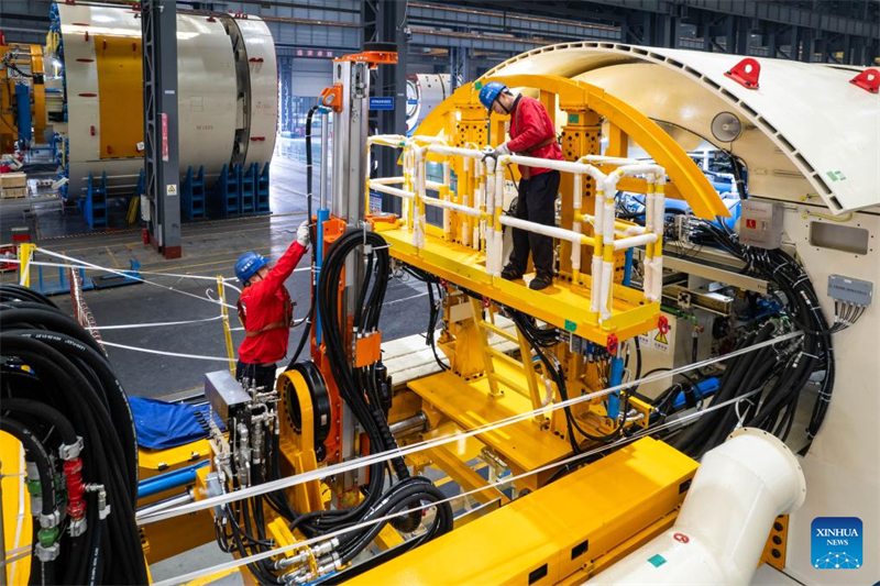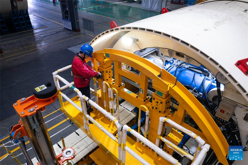Ein Arbeiter montiert am 18. Dezember 2024 eine Tunnelbohrmaschine in einem Industriepark in Changsha in der zentralchinesischen Provinz Hunan. (Xinhua/Chen Sihan)