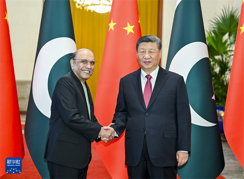 Der chinesische Staatspr?sident Xi Jinping hat sich am Mittwoch in der Gro?en Halle des Volkes in Beijing mit dem pakistanischen Pr?sidenten Asif Ali Zardari getroffen, der auf Xis Einladung vom 4. bis 8. Februar einen Staatsbesuch in China abstattet.