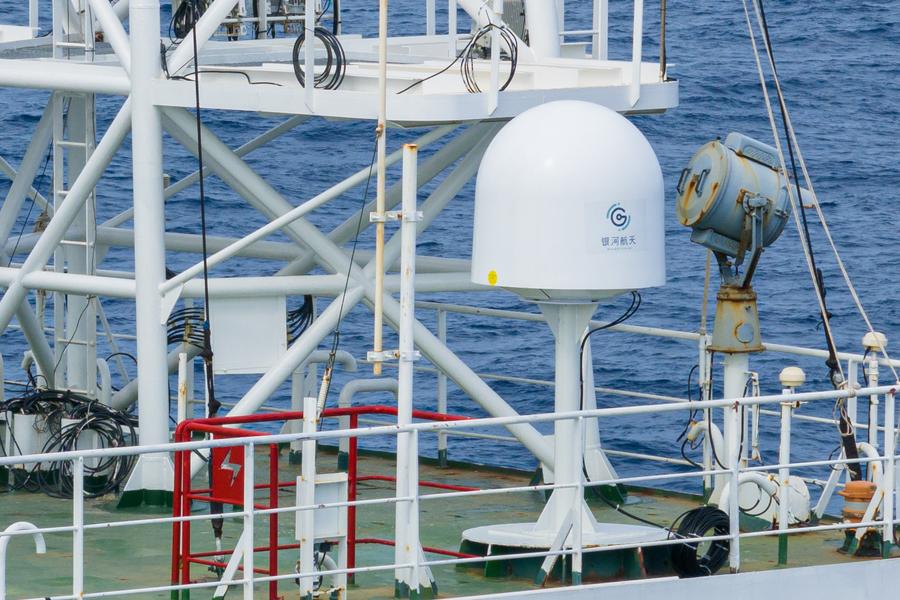 Das Internetterminal eines Satelliten im erdnahen Orbit an Bord des Testschiffs ?Dian Ke No. 1“ am 15. Juni 2023. Forscher von GalaxySpace, einem in Beijing ans?ssigen Satellitenproduzenten, und mehreren wissenschaftlichen Forschungseinrichtungen testeten im Südchinesischen Meer auf offener See Chinas erste Testkonstellation für Breitbandkommunikation in erdnaher Umlaufbahn. (Foto: Xinhua)