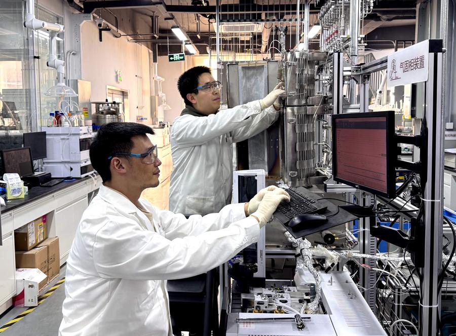 Wissenschaftler bei der Arbeit an einer neuen Methode zur Herstellung von Wasserstoff am 13. Februar 2025 in einem Labor in Beijing. (Foto: Xinhua)