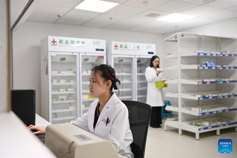 Medizinisches Personal in der ambulanten Apotheke des Perennial General Hospital Tianjin im Bezirk Xiqing in der nordchinesischen Stadt Tianjin, 26. Februar 2025. (Xinhua/Li Ran)