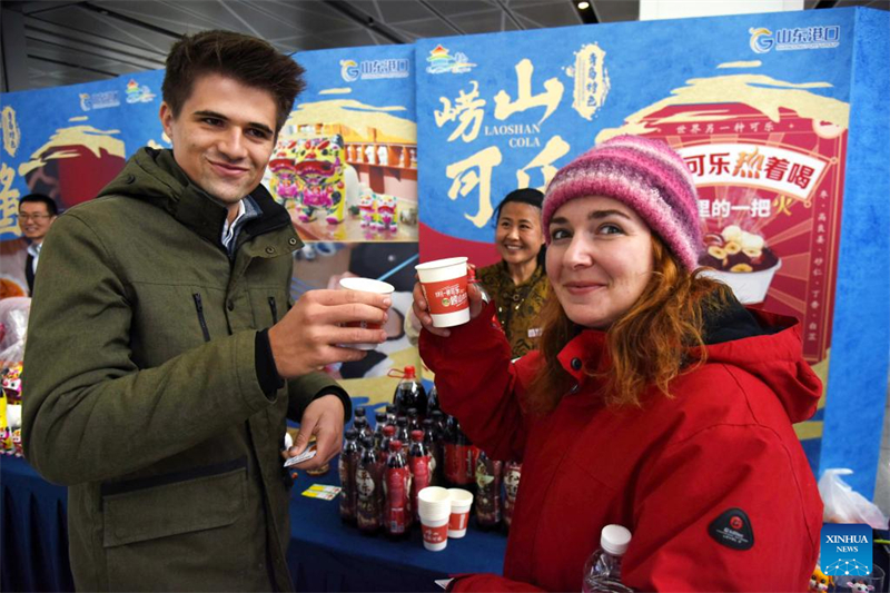 Touristen des Kreuzfahrtschiffs ?Europa 2“ probieren am 1. M?rz 2025 in einem Hafen in Qingdao in der ostchinesischen Provinz Shandong ein lokales Getr?nk. (Xinhua/Li Ziheng)