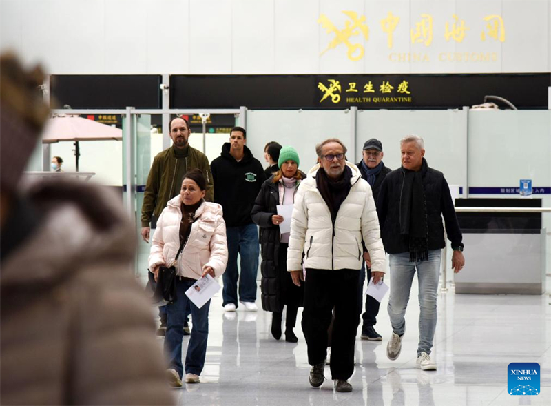Touristen des Kreuzfahrtschiffs ?Europa 2“ passieren den Zoll in einem Hafen in Qingdao, Ostchinas Provinz Shandong, am 1. M?rz 2025. (Xinhua/Li Ziheng)