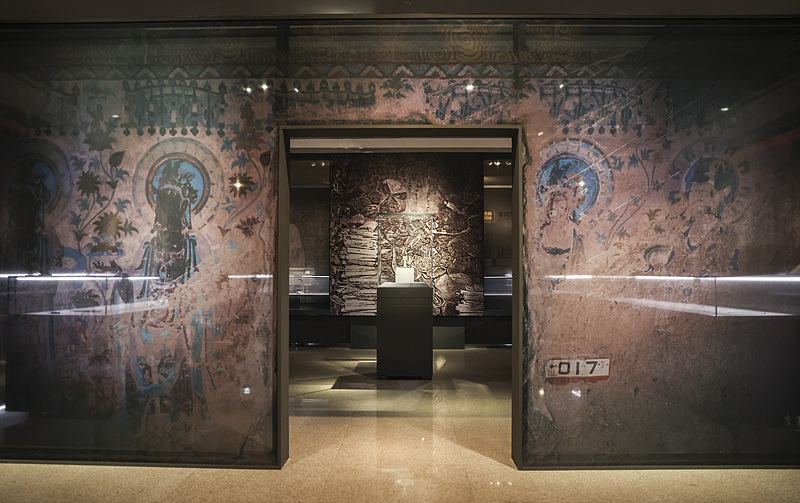 Die Ausstellung mit dem Titel ?Ink Splendor and Cultural Context: Gansu Silk Road Art Treasures Exhibition“ (Ausstellung der Kunstsch?tze der Seidenstra?e von Gansu) umfasst bemalte Keramik, Bambusrohlinge, Seidenmanuskripte, beschriftete Ziegelsteine, Skulpturen und Wandreproduktionen.