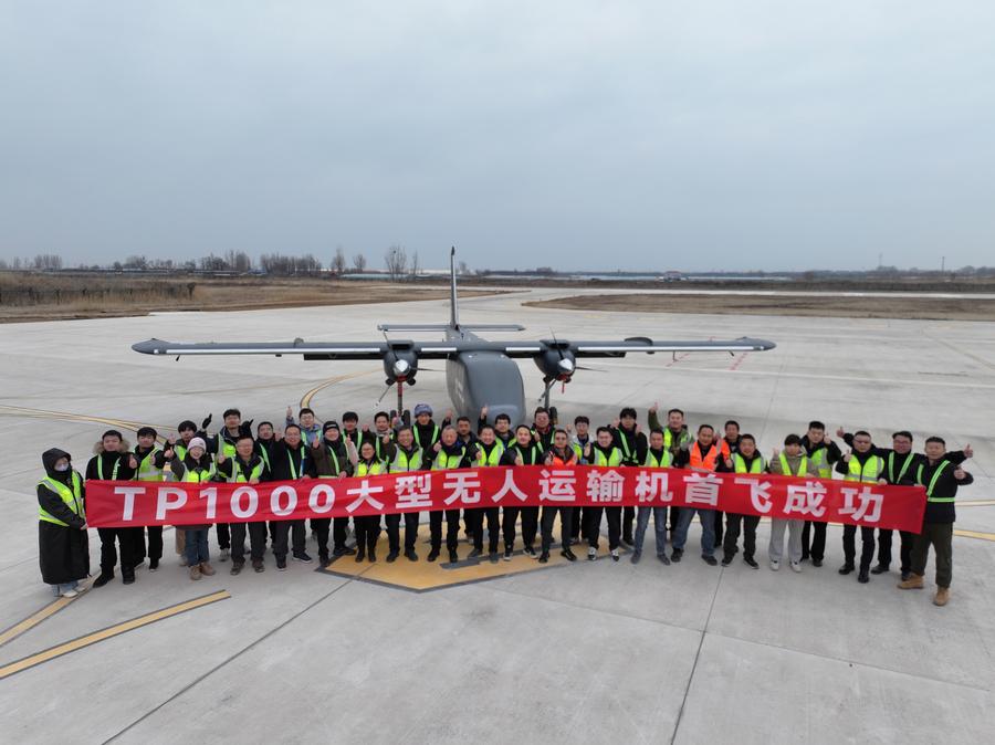 Die in China entwickelte Transportdrohne der 1-Tonnen-Klasse, TP1000, hat ihren Jungfernflug in der ostchinesischen Provinz Shandong absolviert.