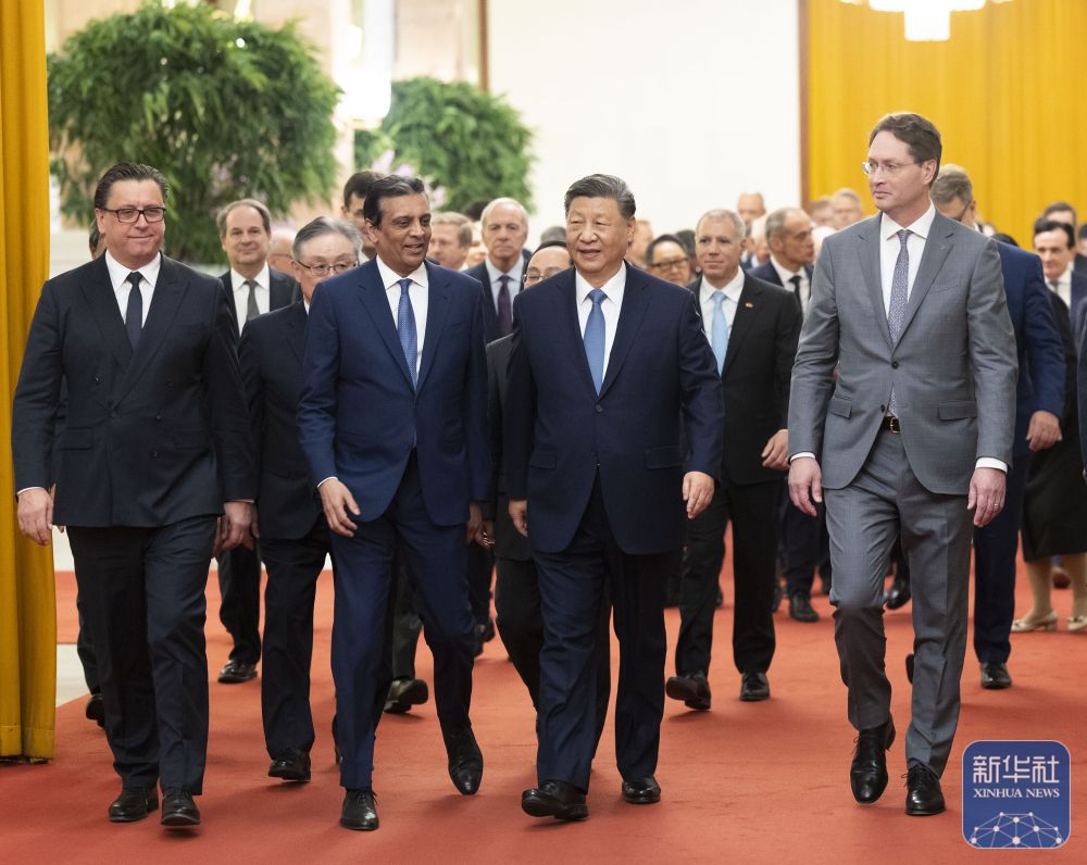 Der chinesische Staatspr?sident Xi Jinping hat sich am Freitag in der Gro?en Halle des Volkes in Beijing mit internationalen Industrie- und Handelsvertretern getroffen.