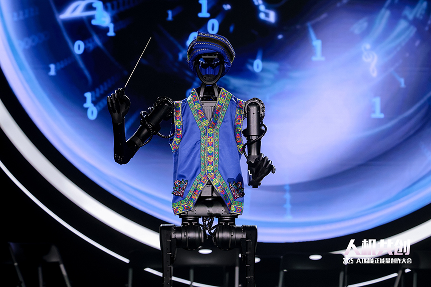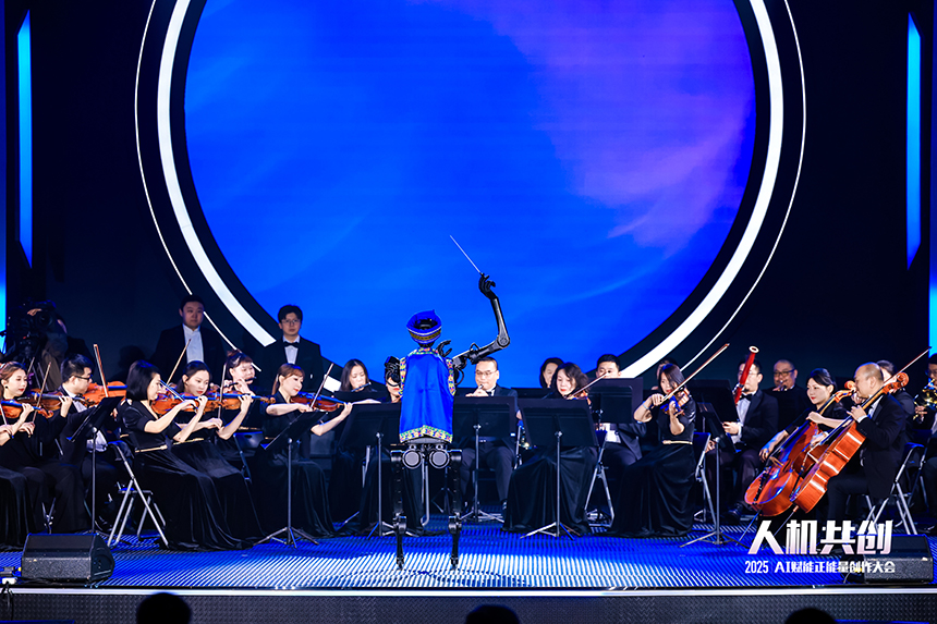 Der KI-Dirigent: ?Zhiyin“ dirigiert das Orchester. (Foto zur Verfügung gestellt vom Organisator)