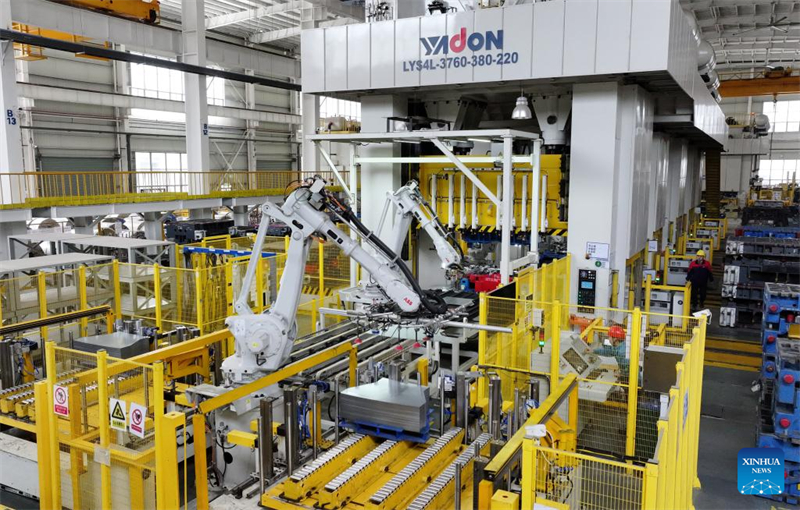 Roboterarme in einer Werkhalle eines produzierenden Unternehmens für Autoteile im Kreis Feixi in Hefei in der ostchinesischen Provinz Anhui am 31. M?rz 2025. (Foto: Xu Yong/Xinhua)