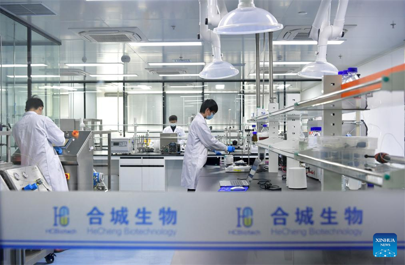 Mitarbeiter in einem Labor von HeCheng Biotechnology Co., Ltd. im Kreis Feixi von Hefei in der ostchinesischen Provinz Anhui am 31. M?rz 2025. (Foto: Xu Yong/Xinhua)