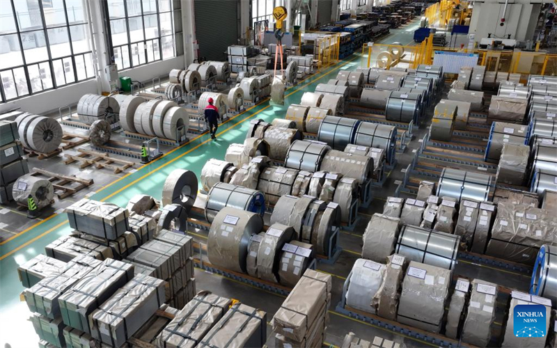 Eine Hebemaschine beim Transport von Material in einer Produktionshalle eines produzierenden Unternehmens für Autoteile im Kreis Feixi in Hefei in der ostchinesischen Provinz Anhui am 31. M?rz 2025. (Foto: Xu Yong/Xinhua)