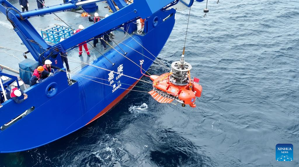 Sea Guru II, ein Unterwasserroboter, der von Forschern der Westlake University in der ostchinesischen Provinz Zhejiang entwickelt wurde, ist vor einem 2.000-Meter-Tiefseetest im Südchinesischen Meer am 4. M?rz 2025 zu sehen. (Westlake University/Handout via Xinhua)