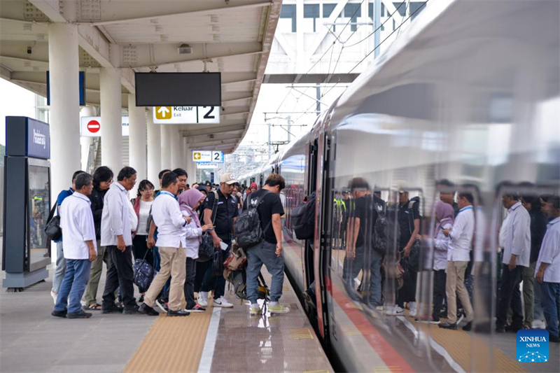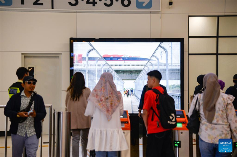Fahrg?ste stellen sich am Bahnhof Padalarang, Indonesien, an, um einen Zug zu besteigen, 24. April 2025. (Xinhua/Xu Qin)