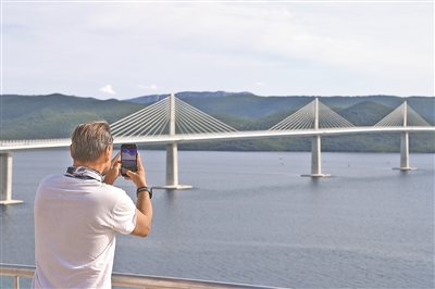 Ein Einheimischer fotografiert die von einem chinesischen Unternehmen erbaute Peljesac-Brücke in Kroatien. (Foto: People’s Daily/Liu Zhonghua)