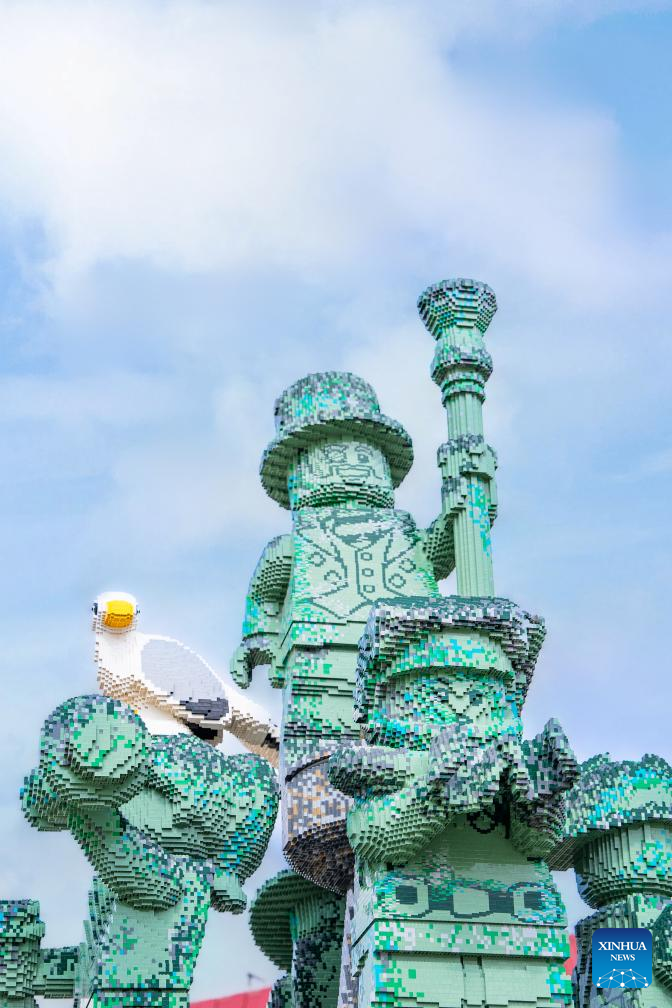 Dieses Foto vom 15. April 2025 zeigt Lego-Modelle im Legoland Shanghai Resort in Shanghai, Ostchina. (Legoland Shanghai Resort/Handout via Xinhua)