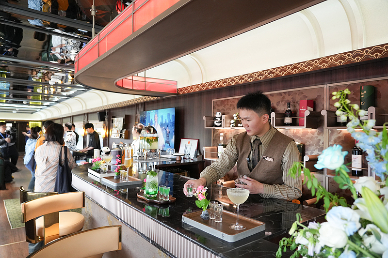 Das Foto zeigt die Bar im Zug. (Foto: Chengdu Economic Daily)