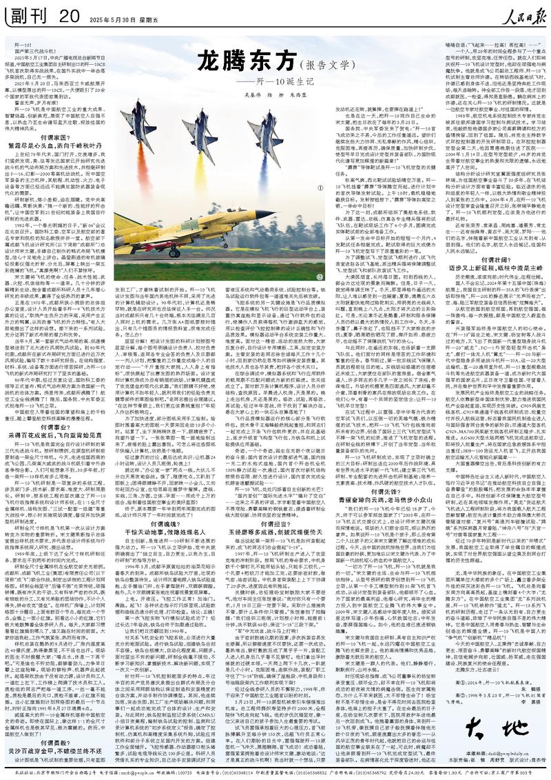 Die chinesische Zeitung ?Volkszeitung" (Renmin Ribao) ver?ffentlichte heute eine ganzseitige Reportage über die Entwicklungsgeschichte des chinesischen J-10-Kampfflugzeugs. Die J-10 ist ein fortschrittliches Kampfflugzeug der dritten Generation, vollst?ndig eigenst?ndig von China entworfen und entwickelt. Ihr Entwicklungsprozess verk?rpert den gro?en, unbeugsamen Geist der chinesischen Nation.