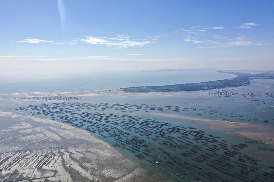 Eine Farm auf dem Meer in Dongxing im südchinesischen Autonomen Gebiet Guangxi der Zhuang-Nationalit?t am 16. Dezember 2024. (Foto: Xinhua/Cao Yiming)
