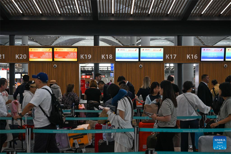 Flugg?ste stehen am 24. Juni 2025 in der Warteschlange von China Eastern Airlines am Flughafen Istanbul, um für den ersten Direktflug nach Xi’an einzuchecken. (Foto: Xinhua/Liu Lei)