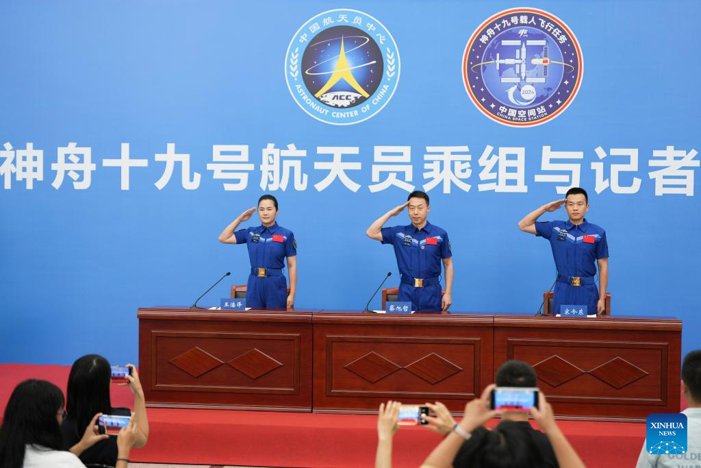 Nach ihrer Rückkehr hat sich die Besatzung von ?Shenzhou-19“ am Mittwochnachmittag zum ersten Mal vor der Presse pr?sentiert.