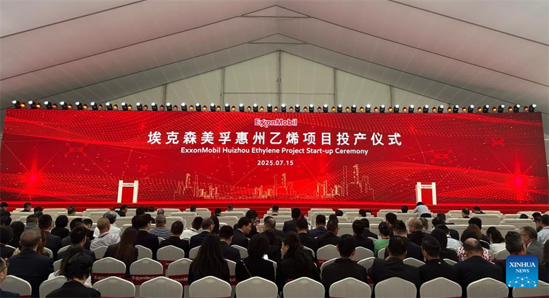 Dieses Foto vom 15. Juli 2025 zeigt die Er?ffnungszeremonie des Chemiekomplexes von ExxonMobil in Huizhou in der südchinesischen Provinz Guangdong. (Wang Daying/Xinhua)
