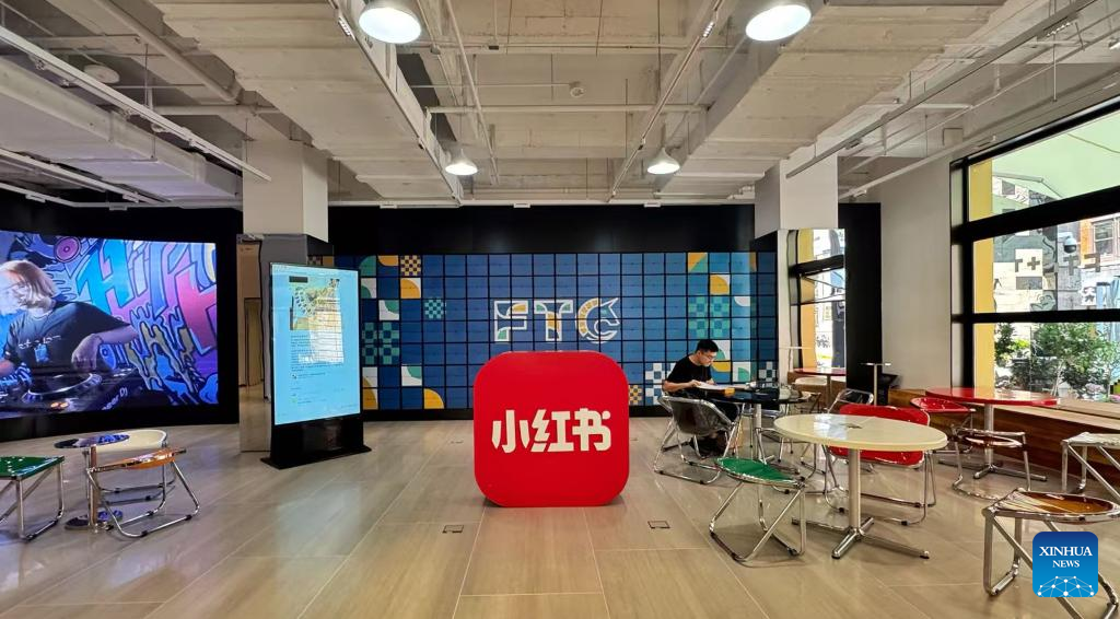 Im Bund FTC, einem der ?ffentlichen R?ume für die Erstellung hochwertiger Internetinhalte im Bezirk Huangpu im ostchinesischen Stadtteil Shanghai, am 15. Juli 2025. (Foto von Cai Weishuai/Xinhua)